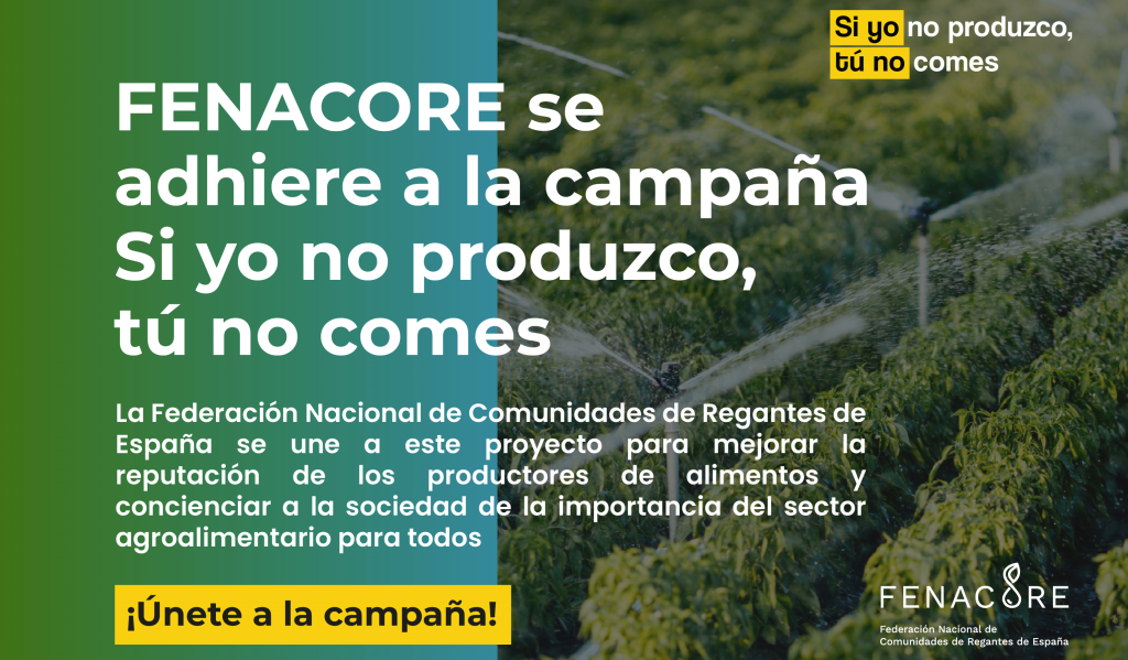 FENACORE, la Federación Nacional de Comunidades de Regantes, se adhiere a la campaña Si yo no produzco, tú no comes.